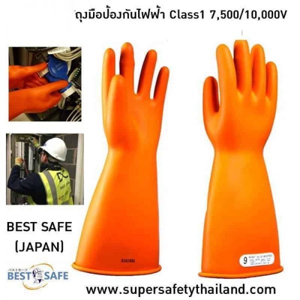 ถุงมือกันไฟฟ้าดูด Class1 7,500V/10,000V